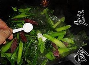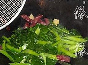 倒进沥干水分的芥蓝,爆炒1分钟;
