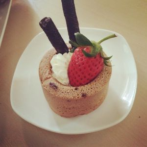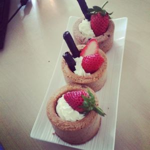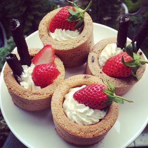 挤上奶油,加上水果即可。