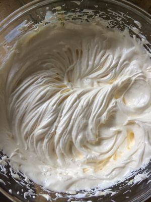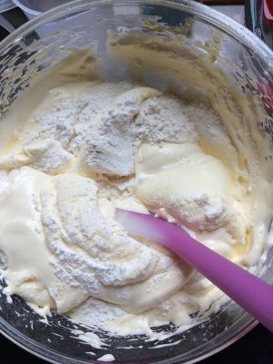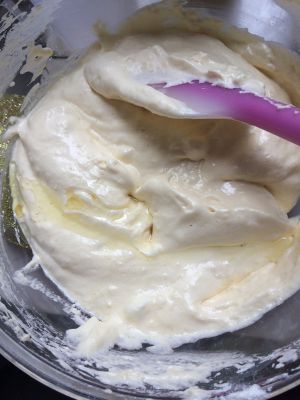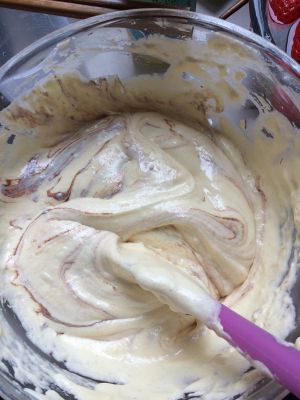 打均匀蛋黄糊,纹路依旧清晰即可。