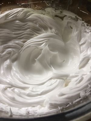 蛋清+细纱糖打发。硬性小尖角。