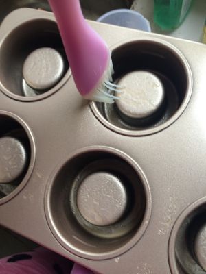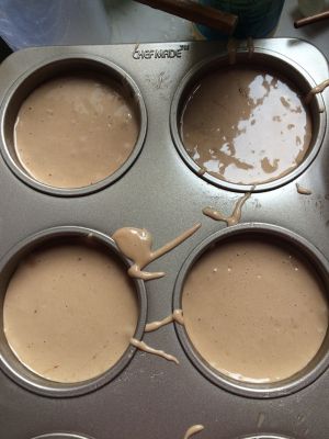 加入面糊。8分满,轻嗑一下。烤箱190度预热。入烤箱下层,160度烤25分钟左右即可。