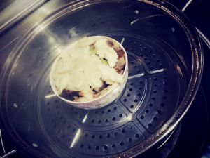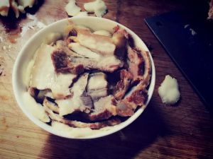 锅里加水上屉准备开蒸(晕,忘了老抽了,最后淋上老抽和我们第一步里说到的猪肉汤再蒸,因为要提色嘛,所以三分之一左右碗就可以了,沫过肉即可。)至于老抽淋多少,要记得按自家口味,别太咸了。