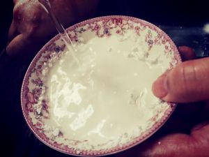 接下来另起锅,把刚才剩下的老汤放里加热,再调一小碟淀粉芡倒入老汤里勾芡成汁。