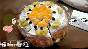 打发淡奶油,摸到蛋糕上,用家里有的水果进行装饰就好(装饰上可自由发挥)若想做复杂点的可以用到横切裸蛋糕,将其分成上下两个圆饼,给中间一层也加入奶油,水果后,在铺上上边的饼,加奶油,水果进行装饰(这个上边是猕猴桃和橙子,黑色的是黑加仑干)
