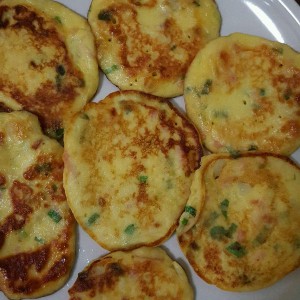 平底锅放少量油,用小勺放入面糊,摊平即可