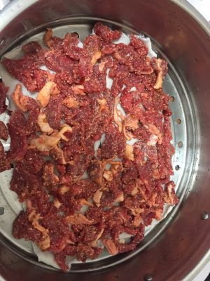 下面铺上纱布,中间留油一个小缝隙,把肉放上去。