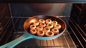 将蘑菇放入烤箱,190度烤20分钟左右!食用的时候将蘑菇和蘑菇盅里面的汤一起吃掉,口感十分鲜美!(如果没有烤箱,也可以用平底锅加盖子、小火烧6-8分钟!)