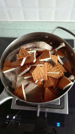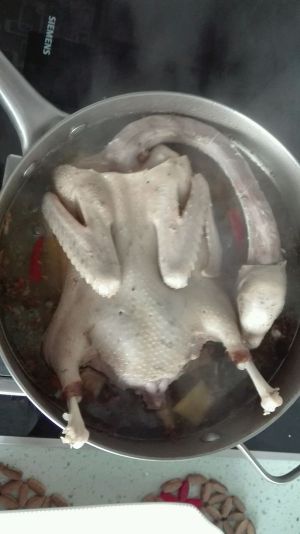 放水没过鸭子一半,各种香料入锅中火烧45分钟,放入香干,用生抽老抽调味,继续煮45分钟。