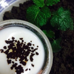 倒入一层冷冻,再倒另外一层。牛奶中加入吉利片就是白色那层啦。最后咖啡撒上。