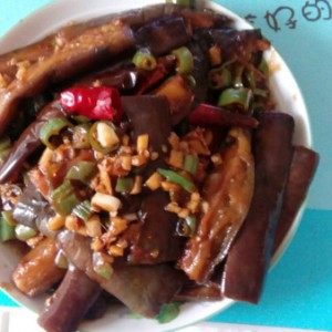 到入适量油,油热之后到入姜蒜干辣椒炒两分钟在到入青椒炒两分钟在到入茄子翻炒