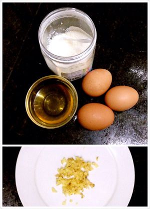 备料:鸡蛋、黄酒、姜末、白糖。
