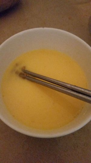 鸡蛋搅拌前加入适量的清水,鸡粉,盐。