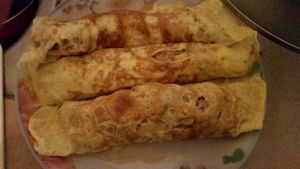 将准备好的肉放入蛋皮中央包裹起来,然后蒸十分钟。