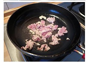 猪肉切片,锅中放少许油烧热后放入肉片煸炒至变色;