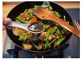 调入1汤匙美极鲜味酱油和少许糖炒熟即可。