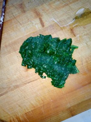 鸡蛋加水100g和80g生粉搅匀,再放入切好的波菜和少量油,用筷子沾点盐在搅匀!到入方行盒子里!隔冷水蒸15分钟!
