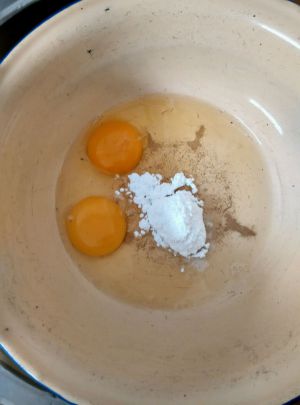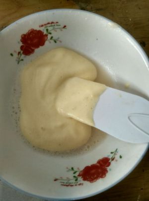 糯米粉分两次切拌蛋糊里手法要快,要轻柔