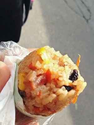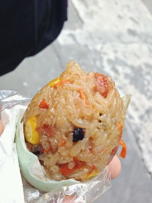 准备好所有食材 然后倒入糯米中,搅拌~加入沙茶酱,酱油还有料酒,静置一会儿