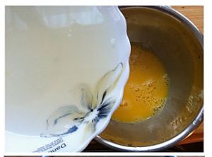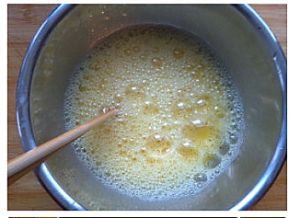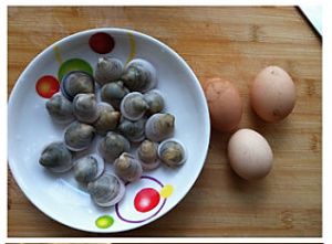 3个鸡蛋打散后,按1:1或1:1.5的比例倒入蛤蜊汤水;