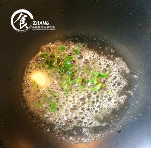 然后放入蒜片爆香后将蒜片扔掉(其实要独头蒜比较好 但家里断独头蒜了)