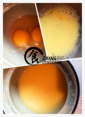 将蛋蛋打散(哈哈哈)加入一点料酒 盐还有凉白开搅拌均匀后过筛