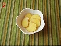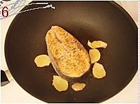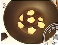 锅里放一点橄榄油加热,姜片平铺在锅里;