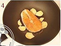 盖上锅盖,先中火干煎1.5-2分钟,然后打开将鱼和姜都翻个面,再盖盖子煎1.5-2分钟(此处以鱼排厚度为1.6厘米左右计算时间);
