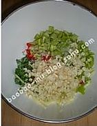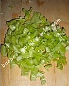 青椒去蒂切成粒。