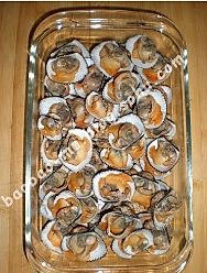 麻蛤掰去半边壳,摆在盘中。(盘子要深一些)
