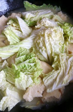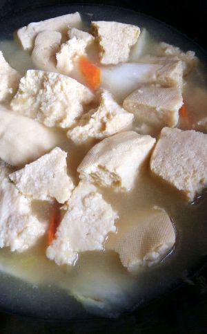 加热到浓汤宝完全溶解后,加入掰成大块儿的冻豆腐。小火慢炖