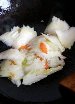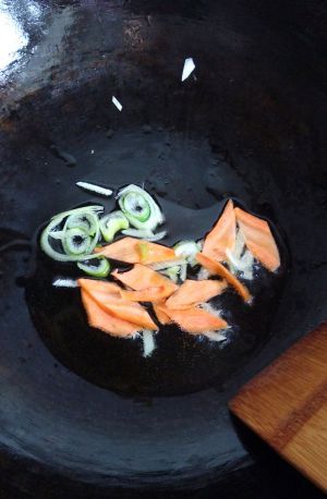 热锅热油,爆香葱花后,下胡萝卜翻炒一下