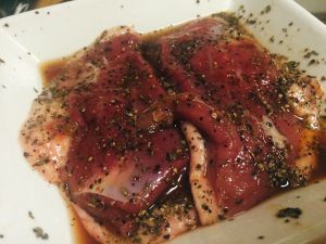 鸭胸浸入料酒,黑胡椒,盐,蜂蜜依次涂匀表面,腌制一晚~
