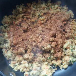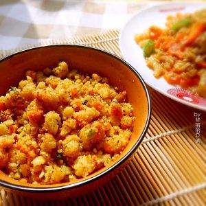 拌成小疙瘩面,装在碗里备用。