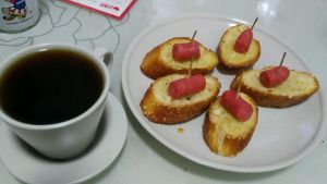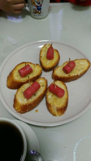 用锯齿餐刀将法棒斜切2cn厚片(普通刀加热)
