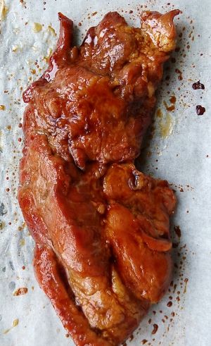 中间翻面,并刷两次蜂蜜和老抽的混合物