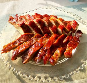 将辅料中除蜂蜜和老抽的其他材料混合好,和猪排一起装入保鲜袋,冷藏腌制一夜