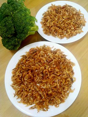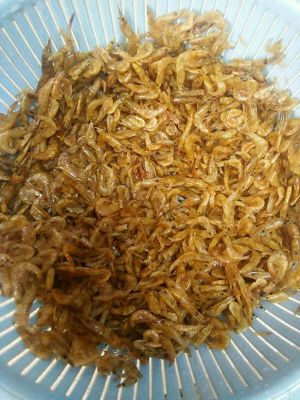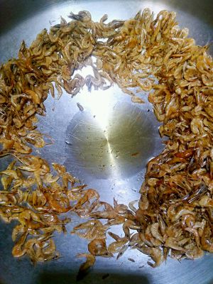 选取大小差不多的干河虾洗净沥干水,待用。(选取山里的无污染的河虾是最好的啦)
