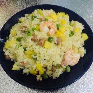 煮米饭的时候加点糯米,炒出来的菠萝饭会更好吃(๑´ڡ`๑)