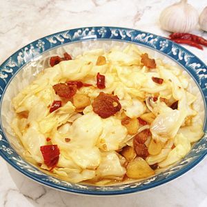 包菜炒软后,加一小勺盐,一汤匙生抽,醋,翻炒均匀。炒一两分钟就好。