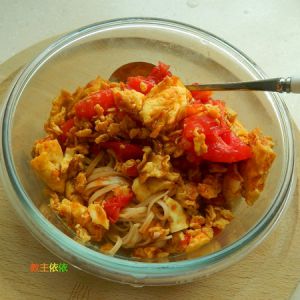 把西红柿炒鸡蛋浇在方便面上就得哩!