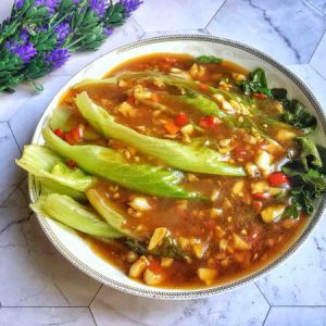 生菜摘叶,盆中清水浸泡10分钟洗净;
