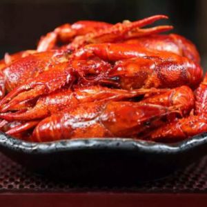 3、起锅热油,放入小龙虾,炸制表面呈红色,捞出控油。