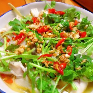 然后把蒜和辣椒淋在上面,最后大功告成,开吃啦,新鲜的食物煮出来的都是那么鲜美,尤其是我这种吃鱼爱好者