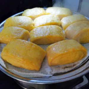面粉加 蒸熟的南瓜 加酵母 加水揉。几个小时变大了之后就可以。