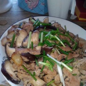 3把切好的葱姜蒜放进烧热油中爆香,放入肉片,然后加点金标生抽,放入蘑菇翻炒,加入调料炒两分钟即可