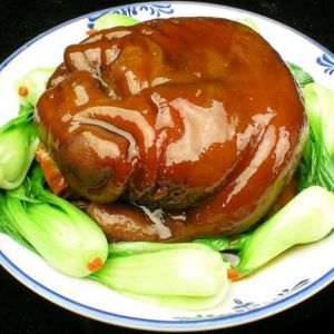 4最后将汁淋在肘子上,撒上葱花即可完成啦~