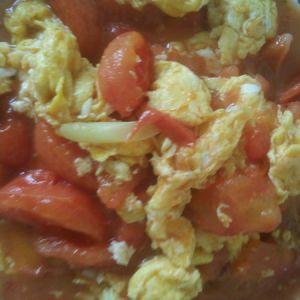 油热后放鸡蛋,鸡蛋炒熟捞出,另起锅香葱炝锅,放西红柿
