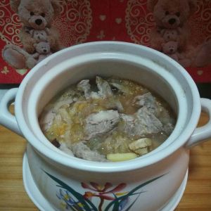 煮至排骨软烂,放入盐即可。一份鲜美的酸菜排骨就做好啦
