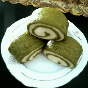 再来张,今天菠菜汁有点粗,没打细,所以面也没那细腻,配上果酱,非常好吃