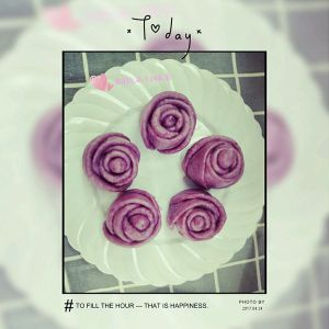 紫薯上锅蒸熟,去死按压成泥,加白糖